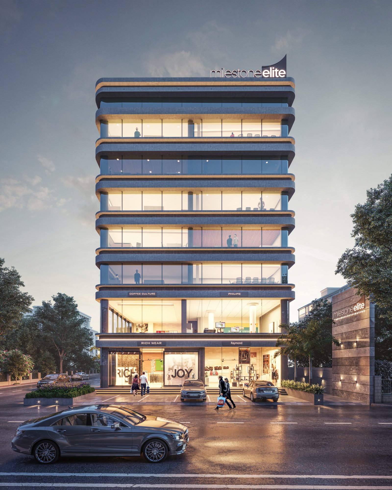 Milestone Elite offers state-of the-art infrastructure that matches the international standards of excellence. Set in heart of the city. Milestone Elite has an imposing elevation that will become the talk of the town. The entire structure being very visible will obviously ensure large footfall to keep the cash counters ever-busy.