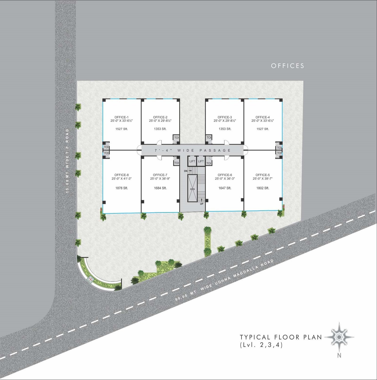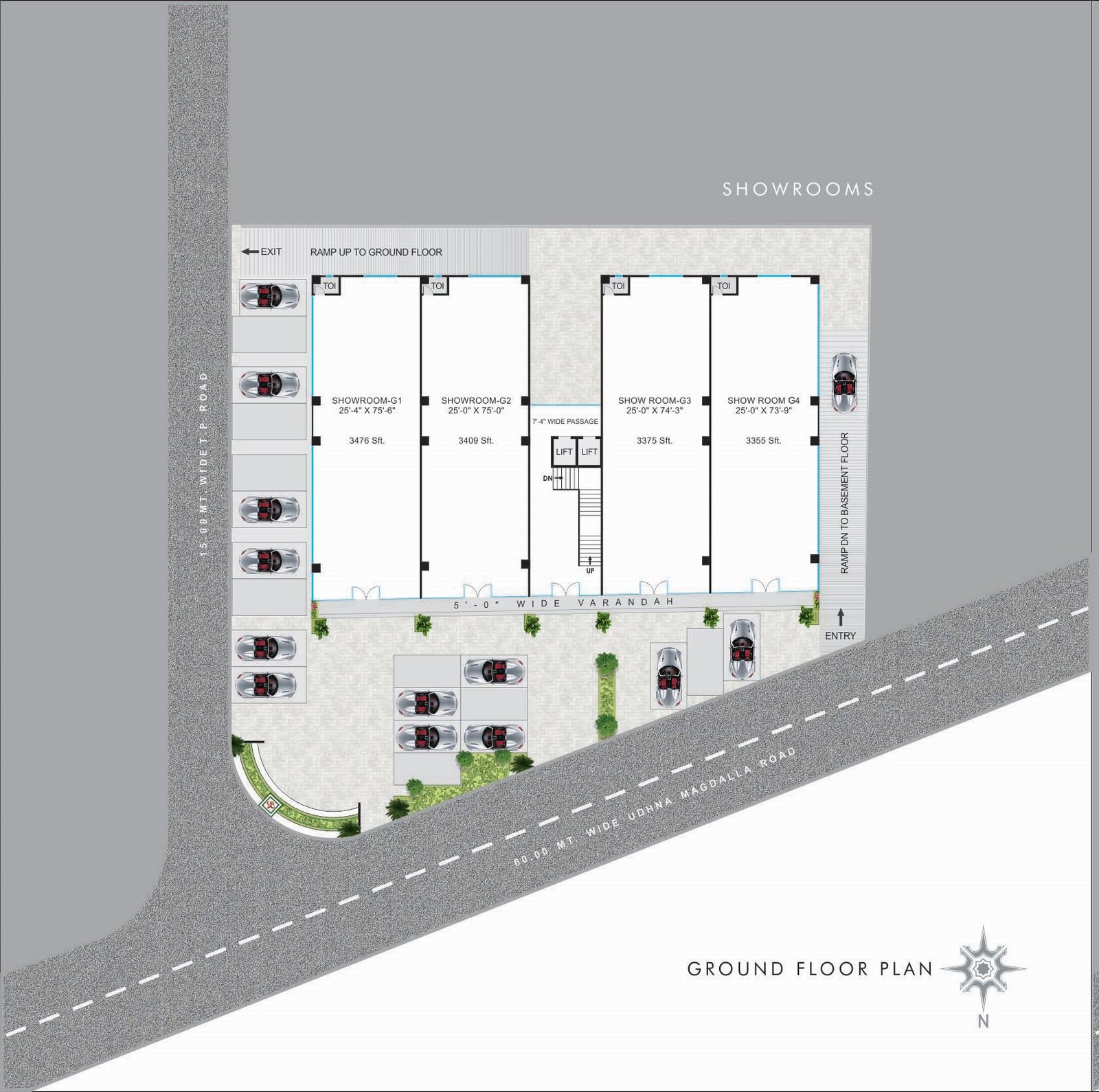 • Dedicated car and 2-wheeler parking for individual shops & offices.